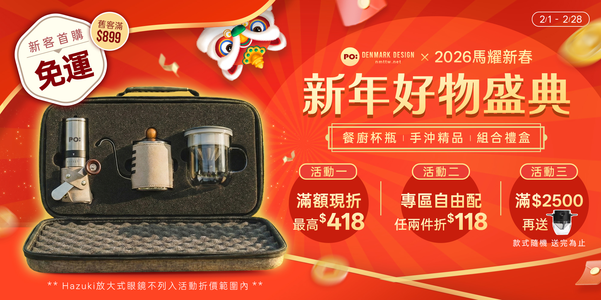 ⸜ 2/1-2/28 ⸝ 新年好物盛典 |下單滿$1688折$118 / 滿$2288折$218 / 滿$3188折$418