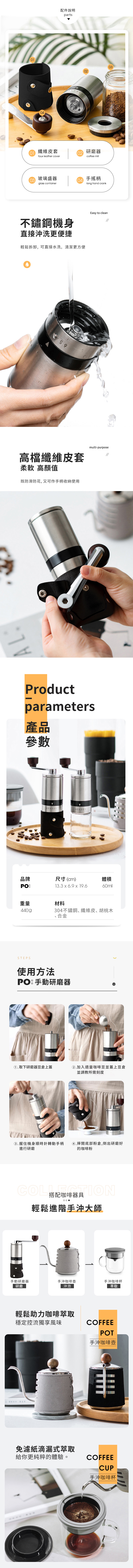 ❍ 優雅圓柱外觀配長手柄,省力、穩定、研磨再升級