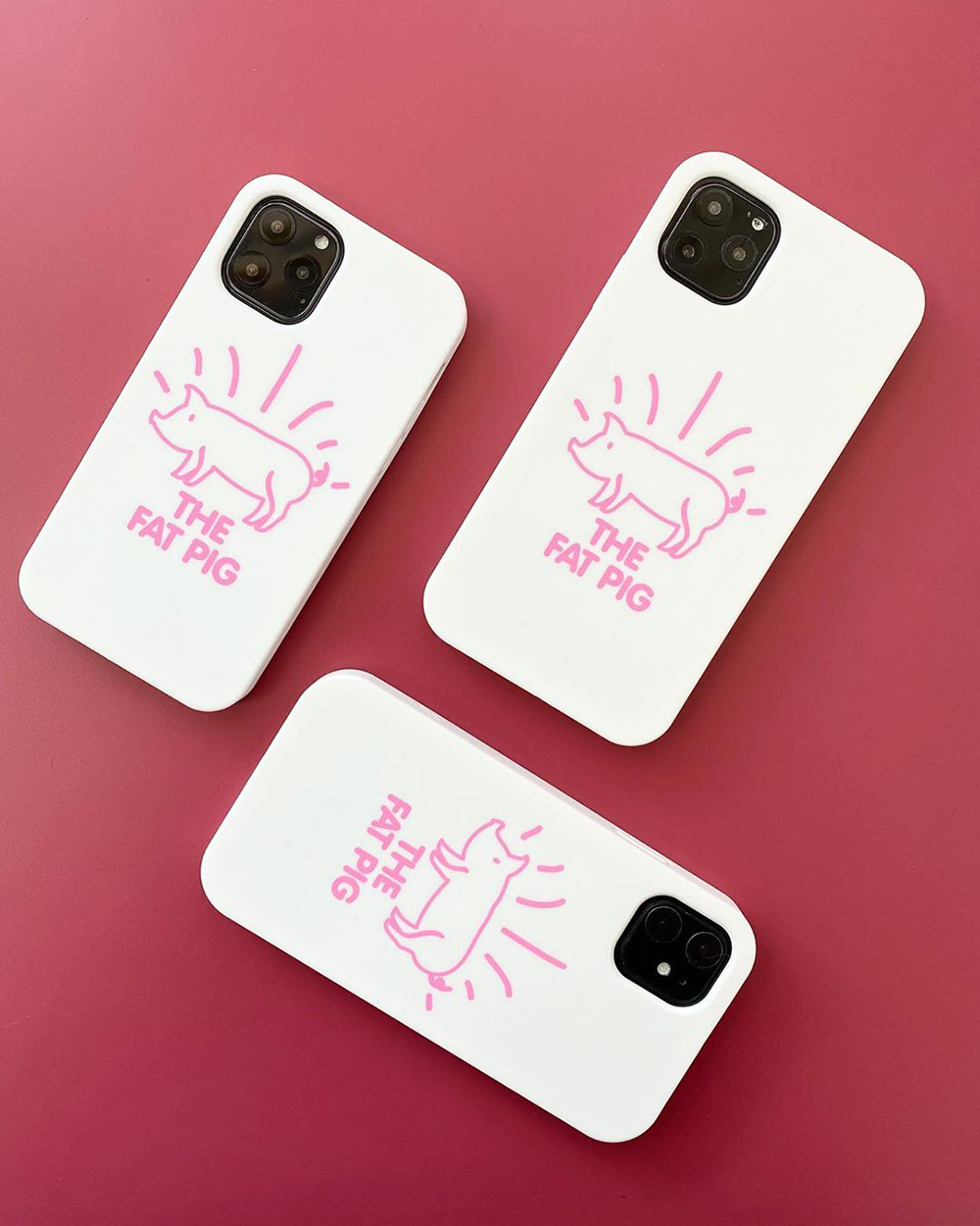 超可愛手繪線條小肥豬白底矽膠手機殼🐖🤍