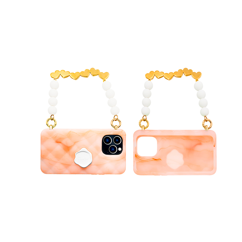 金色愛心珠鍊經典晚宴包 質感手工暈染 每個紋路都獨一無二🧡🤍