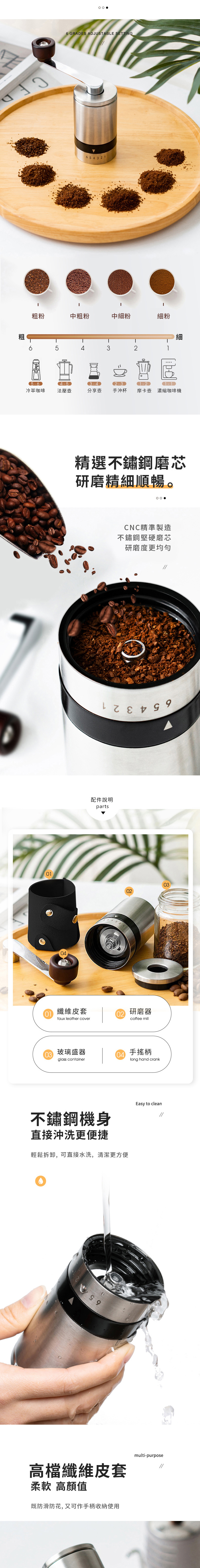 ❍ 不鏽鋼磨芯咖啡磨,可直接水洗更乾淨衛生