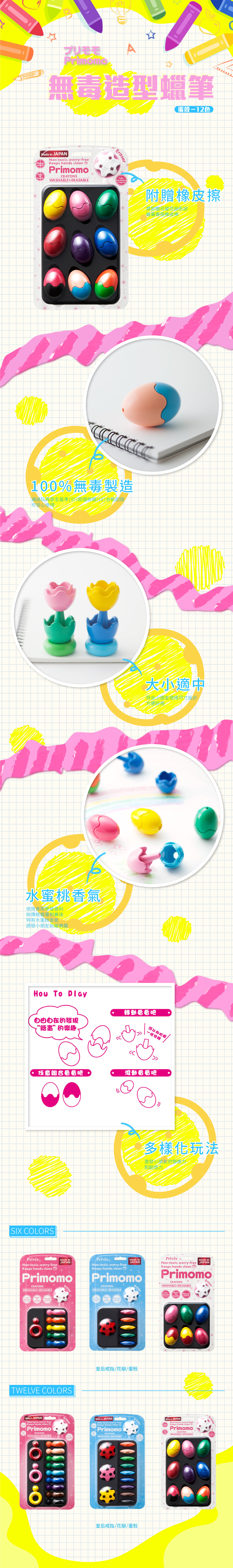 Primomo 普麗貓趣味蠟筆(蛋殼型)12色-附橡皮擦