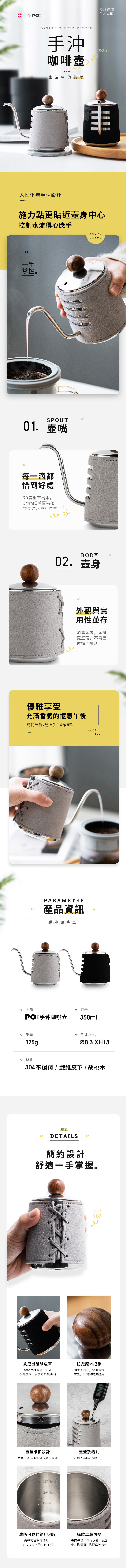 PO: 手沖咖啡壺,簡約設計沒有手柄壺身,一手掌握更容易控制水流量及注水速度。