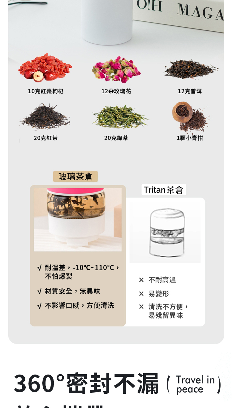 ❍ 密封防漏杯蓋,攜帶安全